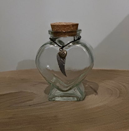 Deze compacte glazen glazen potje is ontworpen voor het bewaren van een kleine hoeveelheid kattenhaar. Het hartvormige potje is voorzien van een kurksluiting en wordt geleverd met een koordje en twee hangers: een vleugel en een hartje met de tekst “love my cat”. Een praktische en nette manier om een herinnering aan uw kat te bewaren.